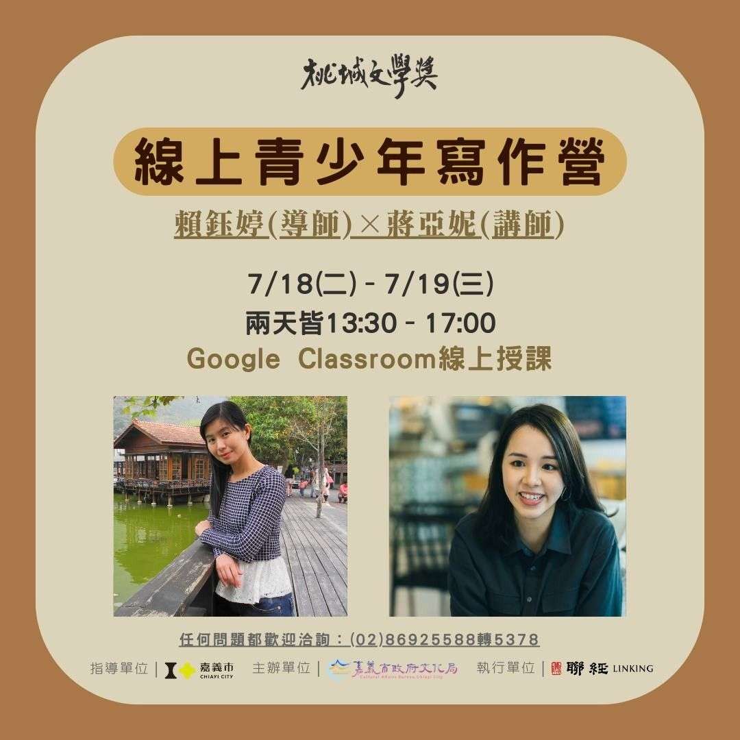 二、本局並將於7月辦理2場推廣活動,其中1場線上青少年寫作營,1場書寫工作坊,一律採線上填寫google表單報名,洽詢電話02-86925588轉5378李小姐。