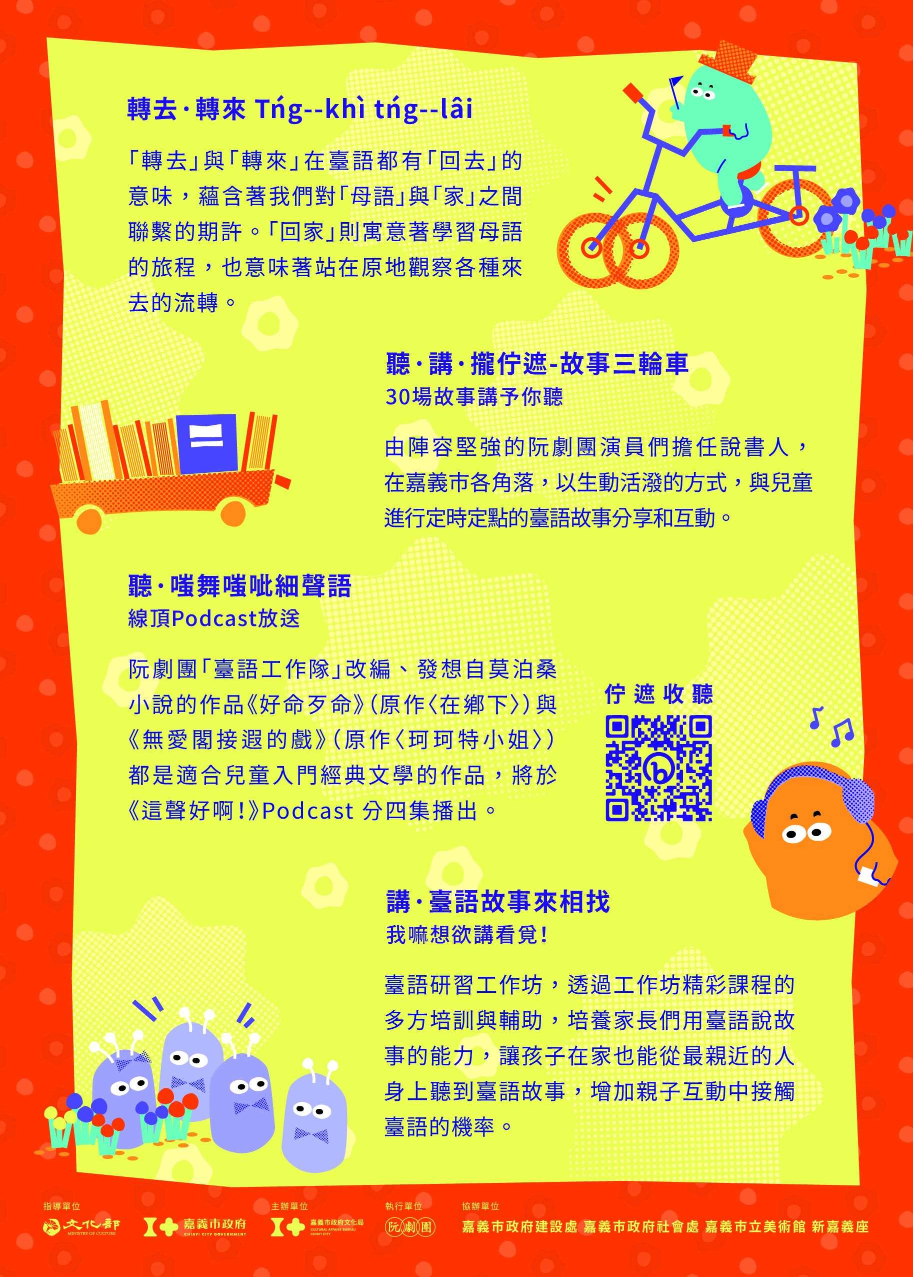 二、詳細活動資訊已公布於嘉義市政府文化局、嘉義市圖書館臉書粉絲專頁,另於文宣海報放置QRCODE供掃瞄查閱,請協助推廣。