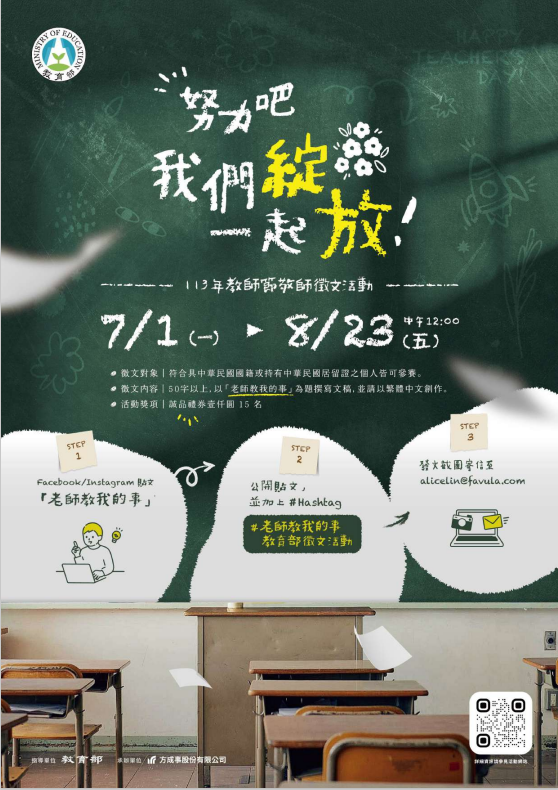 (三)徵文內容:50字以上,以「老師教我的事」為題撰寫文稿,請以繁體中文創作。
