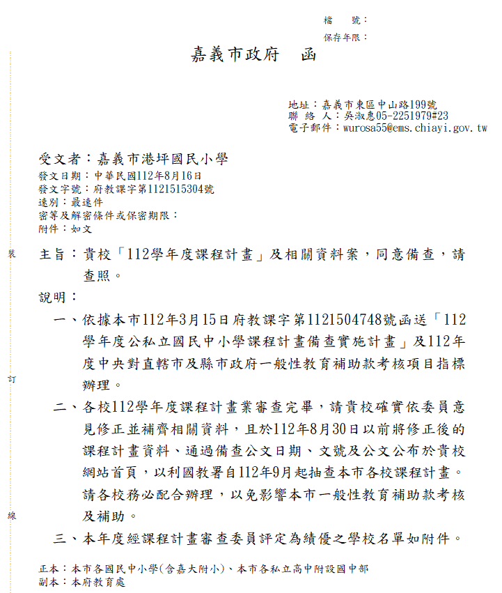 嘉義市政府112年8月16日府教課字第1121515304號通過課程計畫審查資料。