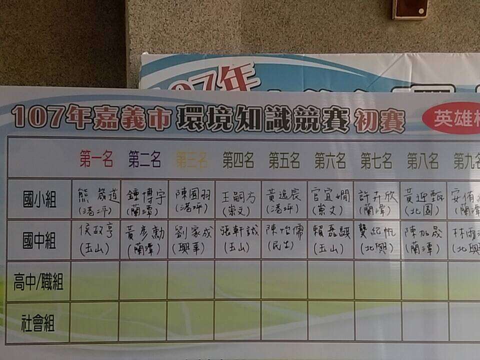 恭喜 本校參加107嘉義市環境知識競賽初賽