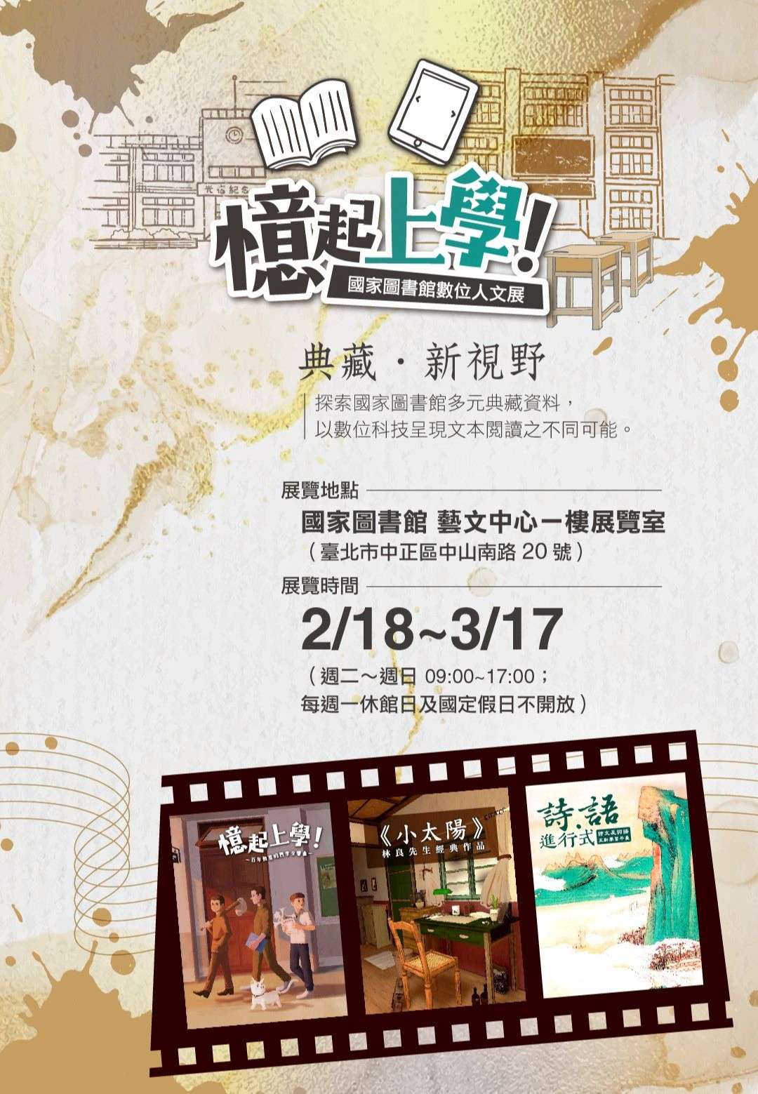 國家圖書館辦理「憶起上學-國家圖書館數位人文展」及「2021台北國際書展韓國主題國書展」。