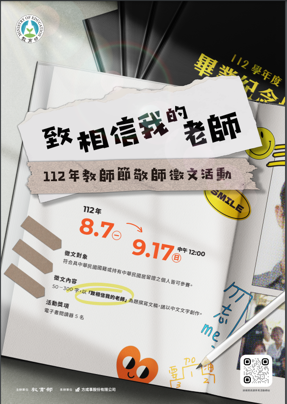 (五)獎項:電子書閱讀器5名,得獎者名單將於112年9月28日(星期四)中午12:00前於該活動網站公布(網址:https://2023teachersday.tw/)。