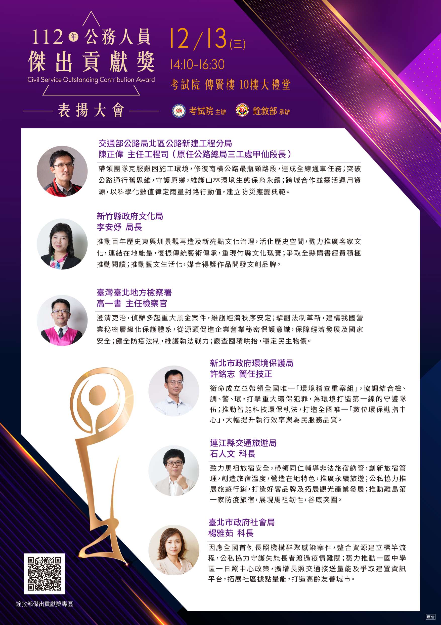 說明:依據本府人事處案陳銓敘部112年11月10日部管二字第1125635468號書函辦理,並檢附原書函及其附件影本各1份。
