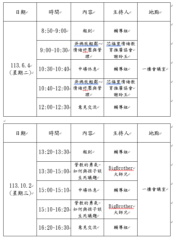 @113年10月2日下午1:30~4:30「管教的勇氣-如何與孩子談生死議題」。
