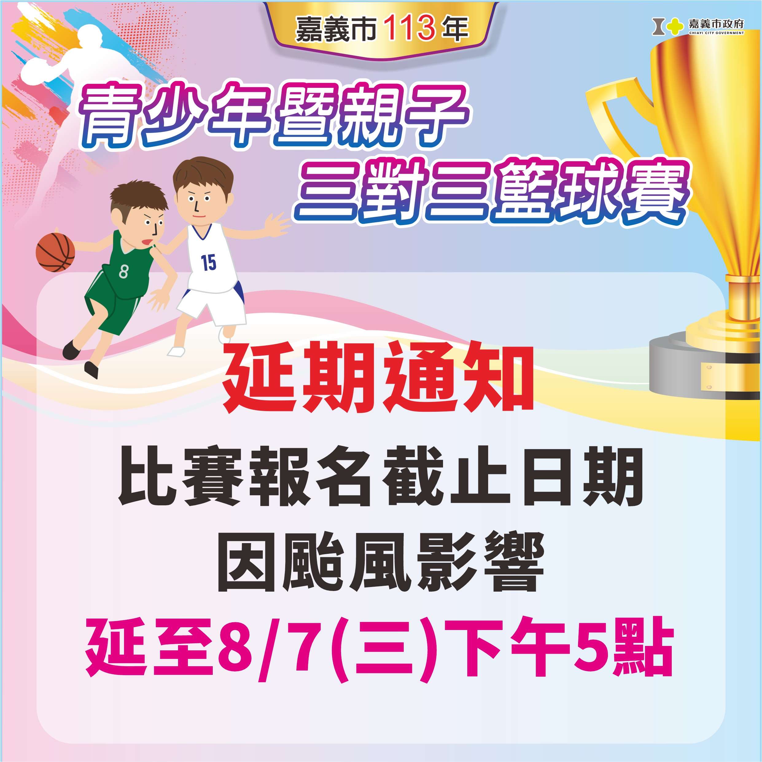 比賽日期:113年8月24、25日(六、日)。比賽地點:嘉義市南興國中道生館及風雨籃球場