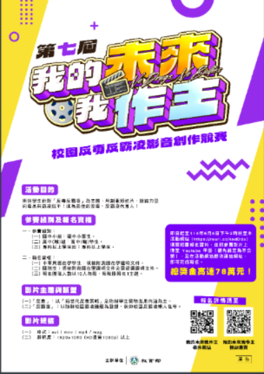 2、「反霸凌」:以防制校園霸凌議題為發想,例如霸凌 行為種類與法律責任、覺察求助訊息、同儕關係修復 等,呈現防制校園霸凌及友善校園之理念。